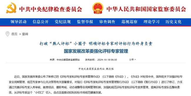 中央紀委國家監(jiān)委相關(guān)同志就《辦法》圍繞打破“熟人評標”小圈子,明確評標專家對評標行為終身負責(zé)等方面內(nèi)容進行解讀,內(nèi)容如下(有刪減):